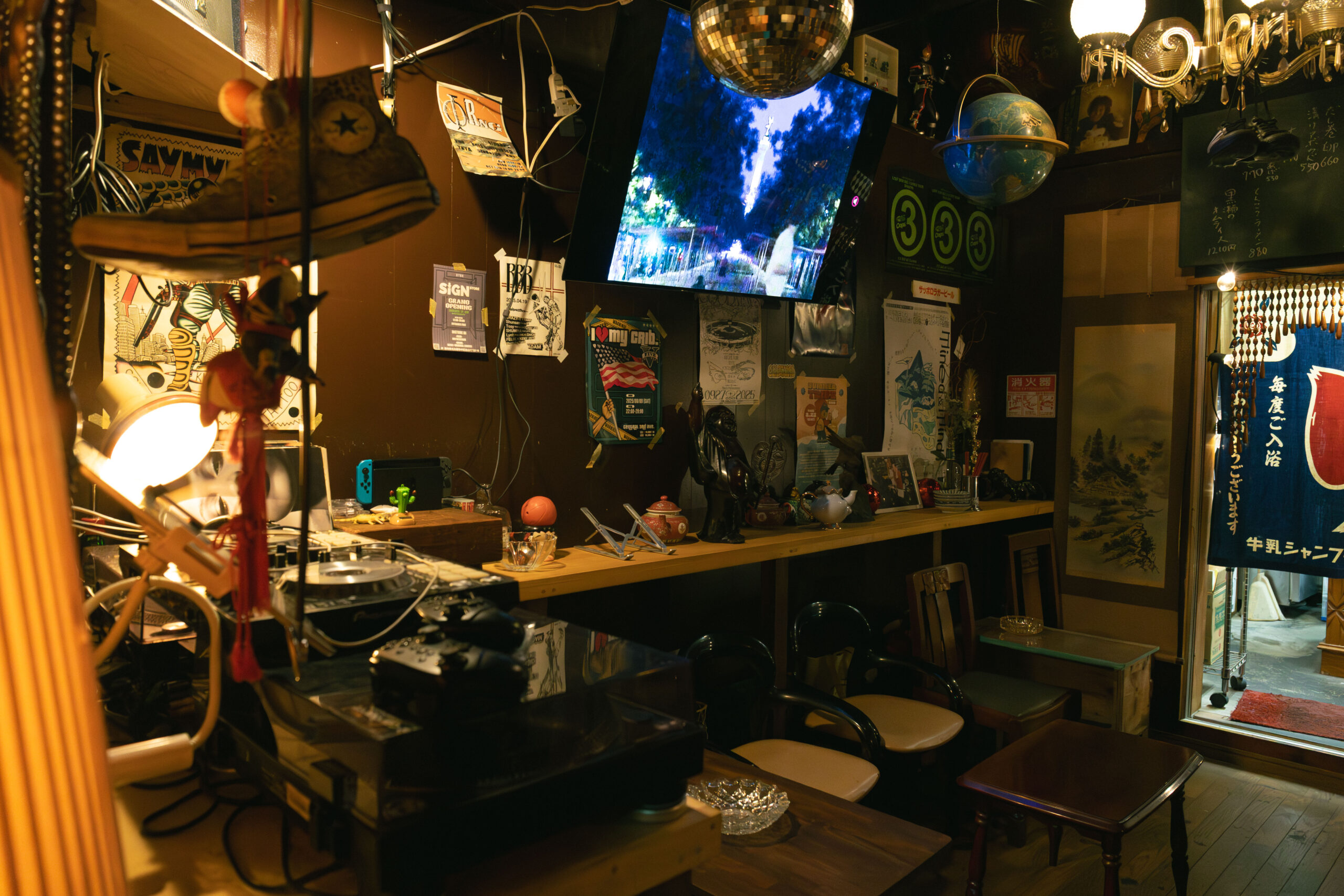 JP:全くないです(笑)。僕と(相方の)黒瀬がずっと思ってたのは、「友達がたくさん来れる街の遊び場を作ろう」っていう、それだけ。店に飾ってるものも、わざわざ買ってきたものじゃなくて、友達からもらったものとか、身の回りにあったものばっかりです。明確なコンセプトはないけど、その時やりたいことをやる、好きなものに囲まれてたいって感じですね。